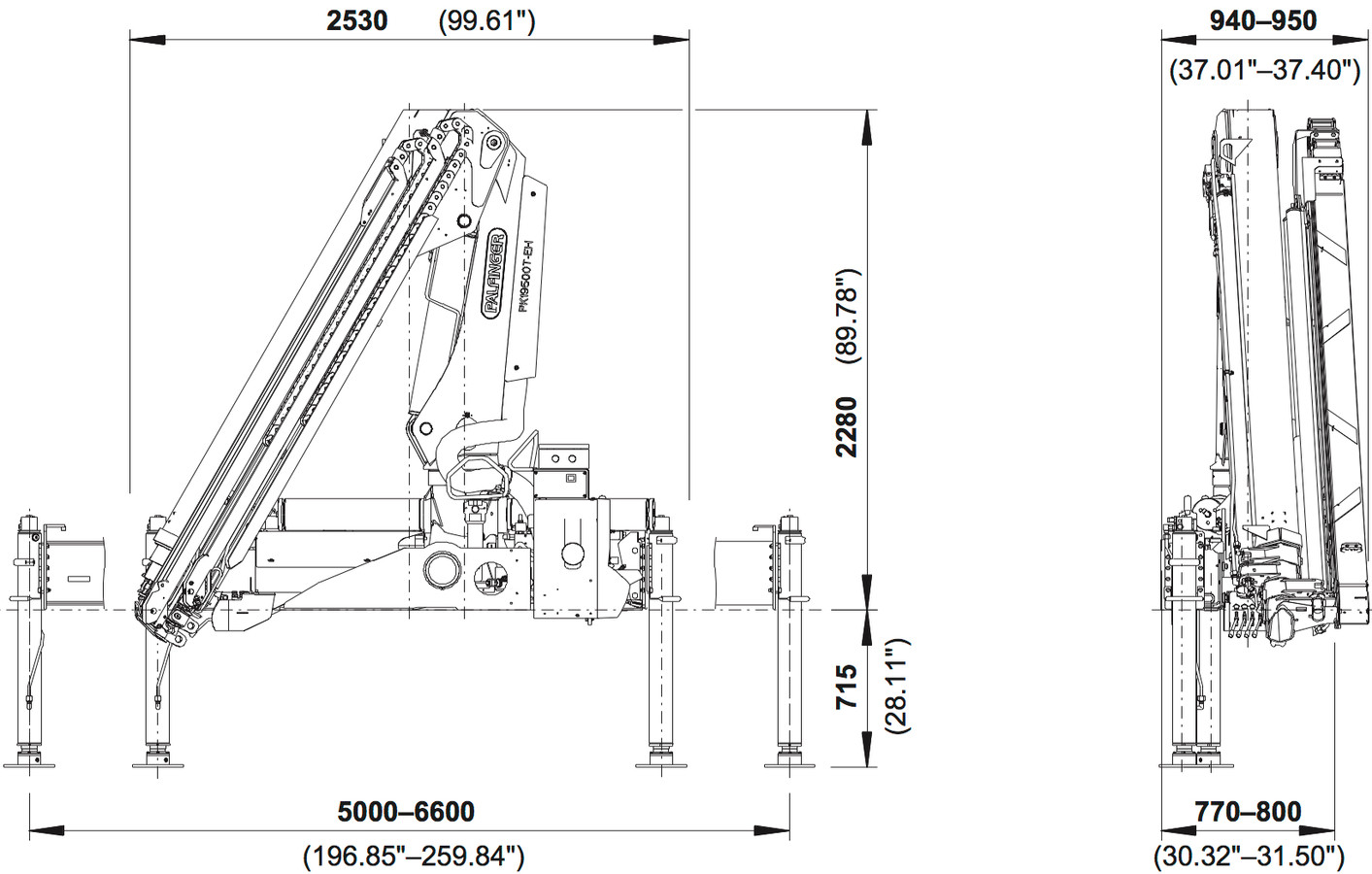 вылет 10.0 м, грузовой момент 17.4 тм, грузоподъемность 7300 кг
