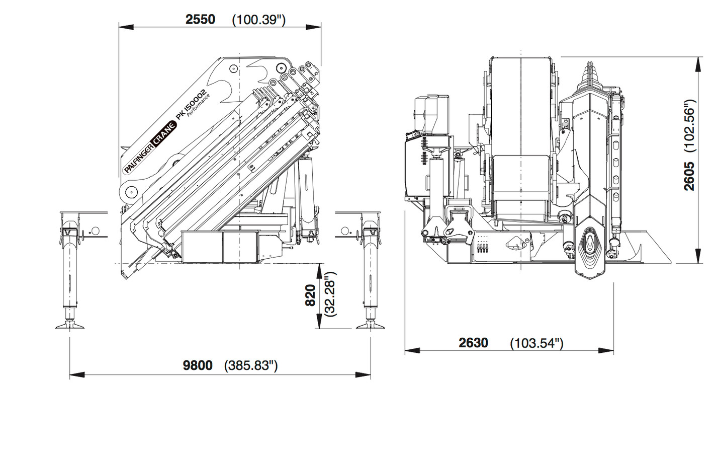 | Стандарт размаха аутригеров | 9.8 m |
