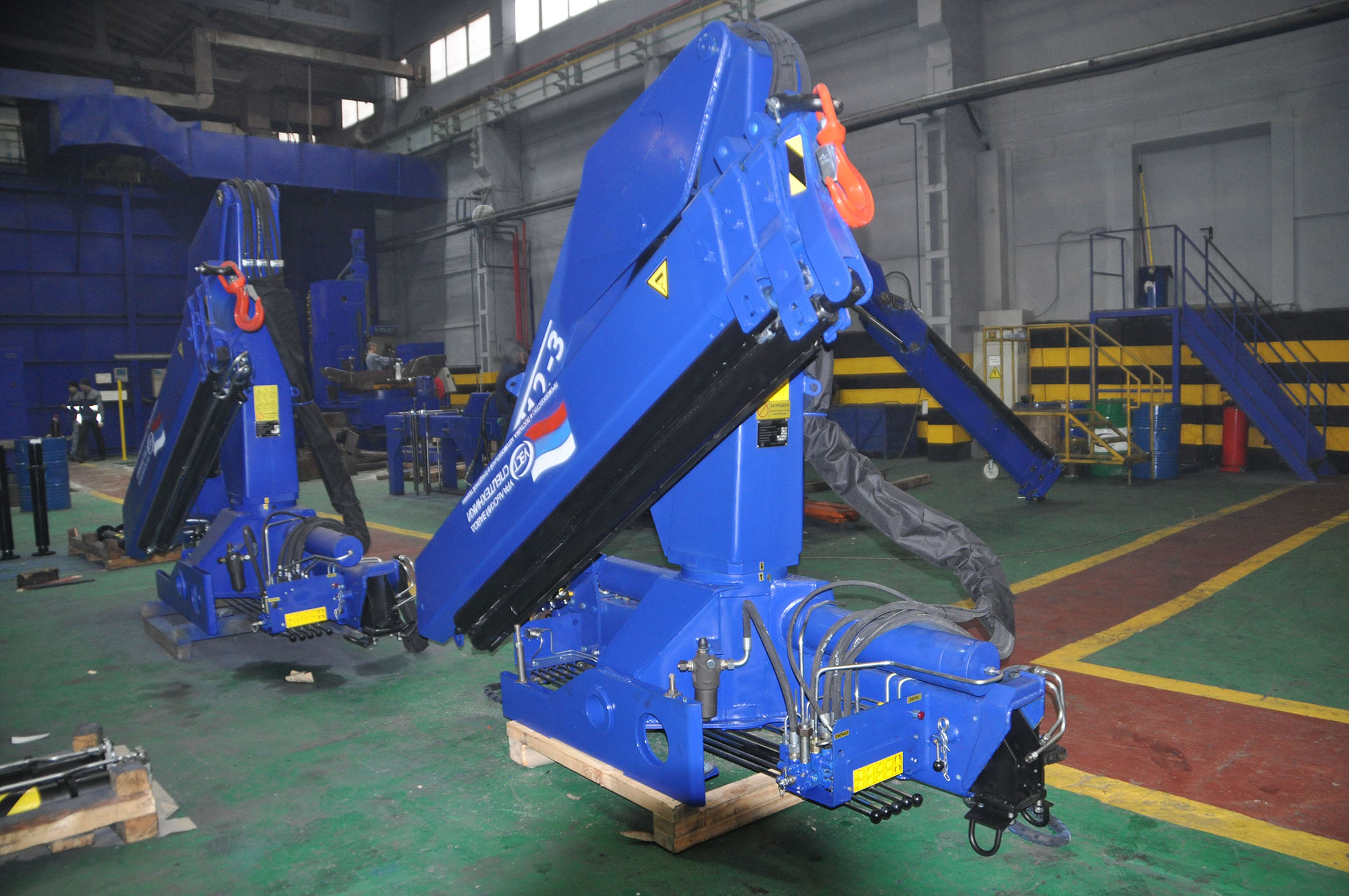 Стрела КМУ Z-образной схемой складывания изготавливается из шведской высокопрочной стали S700 фирмы Domex. Использование данного вида стали позволяет значительно повысить прочность конструкции, улучшить ее грузоподъемные характеристики и уменьшить массу установки.