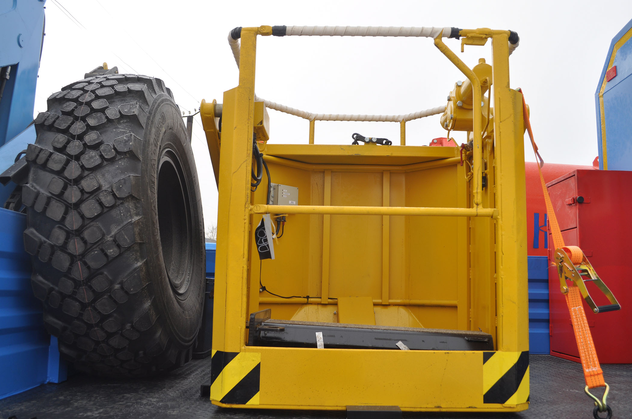 Металлическая с рифлеными бортами. Откидной борт - правый. Лестница выдвижная. Люлька одноместная - 1 шт. Ящик ЗИП. |