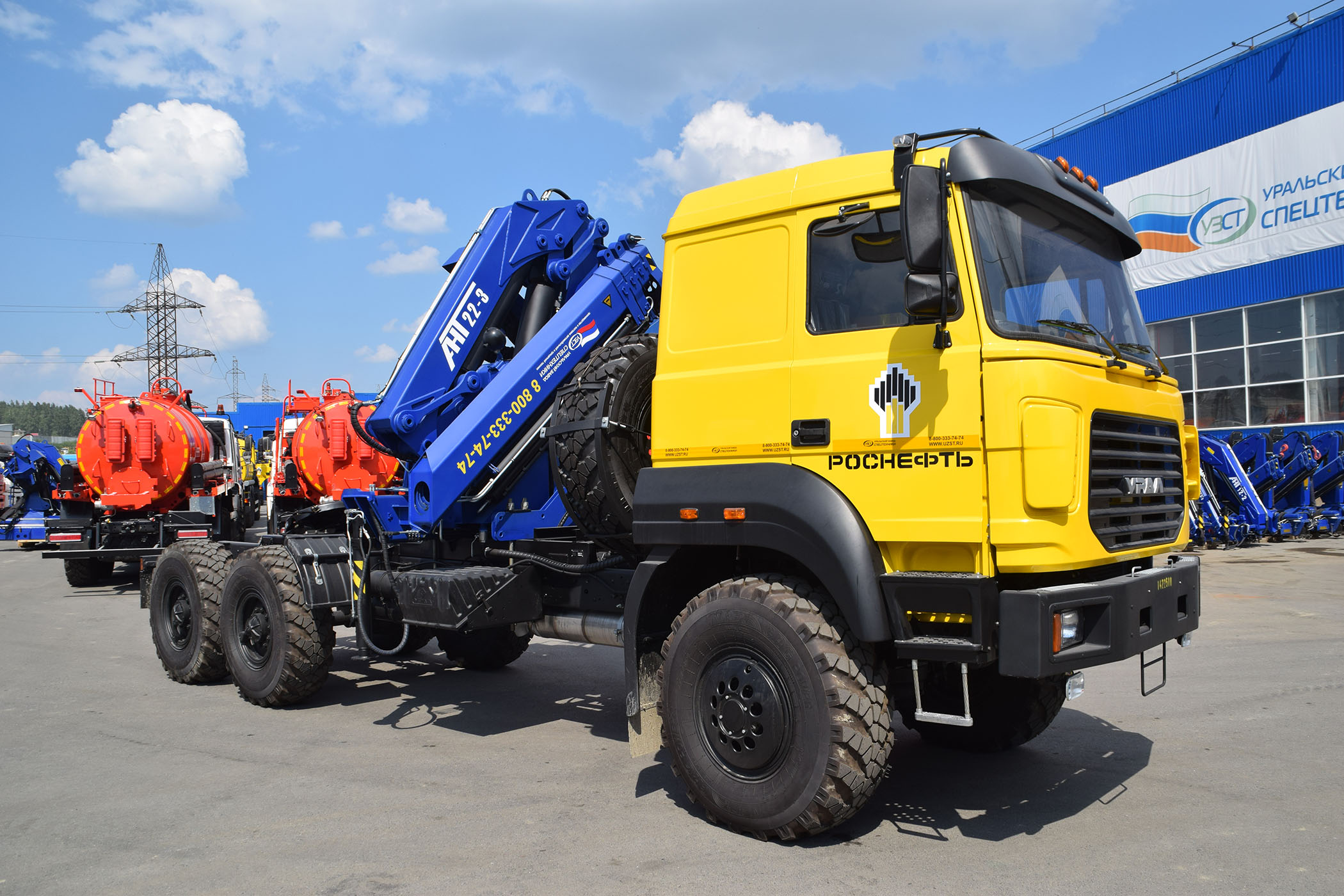 6х6, 230 л.с., коробка передач ЯМЗ-2361, КМУ: грузовой момент 27 тм, вылет 8,53 м, г/п 8 т