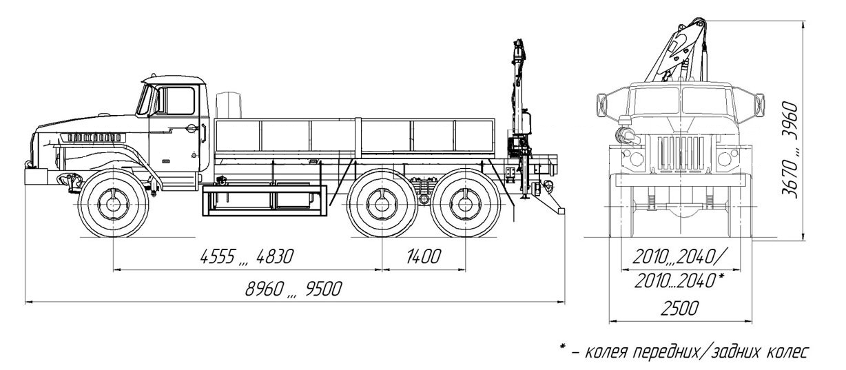 - бортовая платформа; - КМУ массой до 2,65 т, установленная на заднем свесе |
