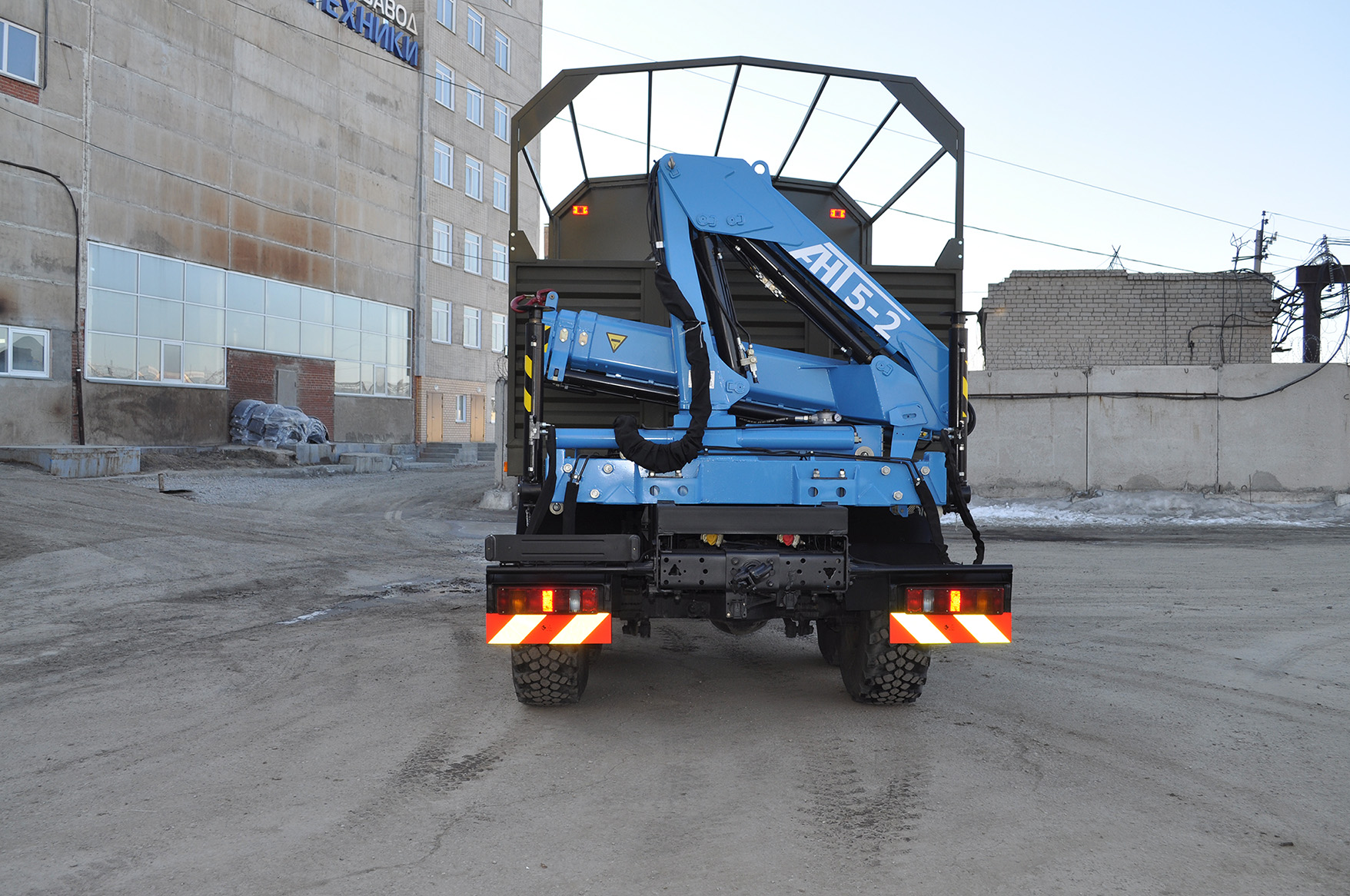 Кран-манипулятор автомобильный бортовой УЗСТ 483В-03 на шасси Урал-4320-1951-60(70) с установкой на заднем свесе