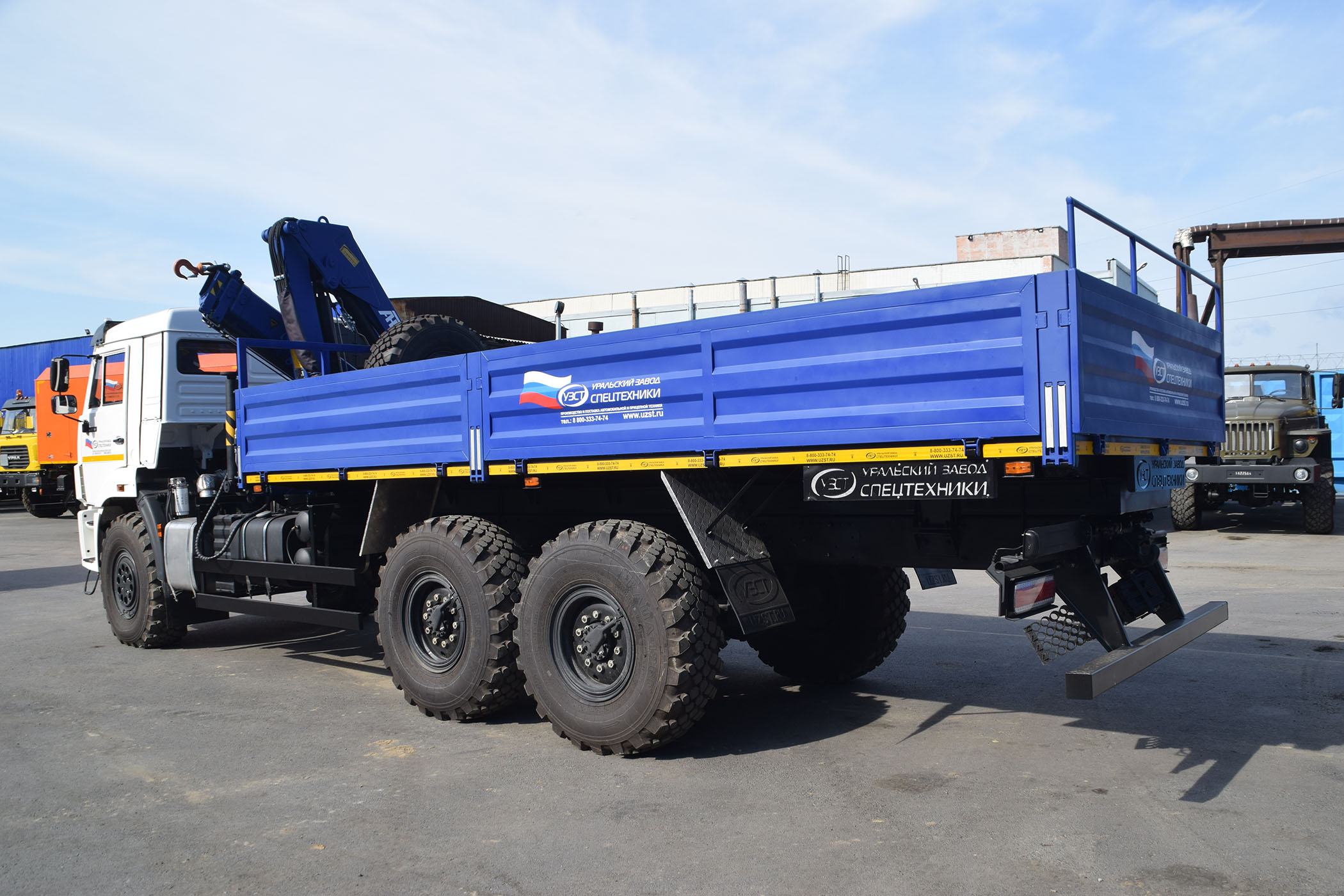 6х6, 300 л.с., коробка передач Камаз-154, КМУ: грузовой момент 8,5 тм, вылет стрелы 8,25 м, г/п 4 т.