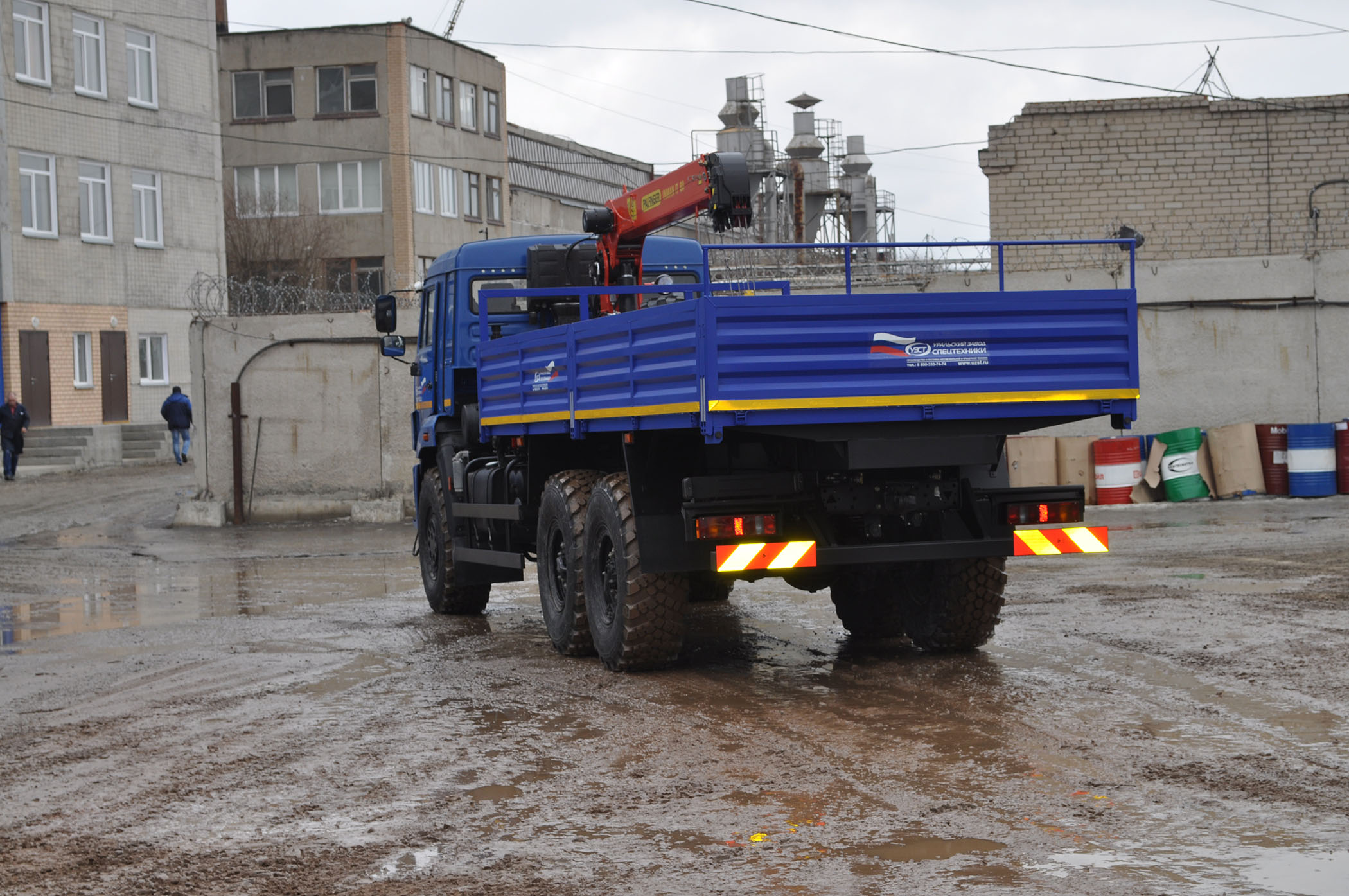 6х6, 300 л.с., коробка передач Камаз-154/ZF9, КМУ: грузовой момент 8,2 тм, вылет 7,53 м, г/п 3,05 т.