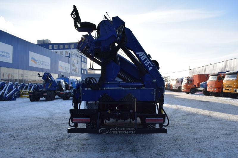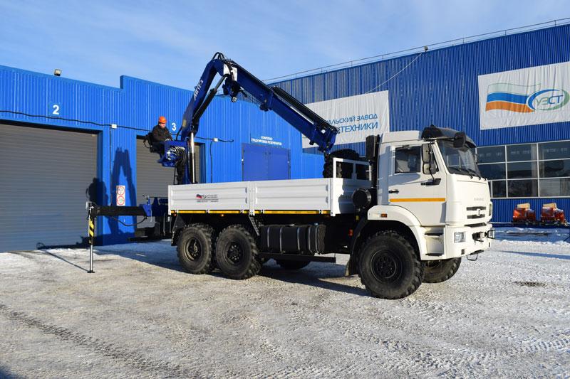 6х6, 300 л.с., коробка передач Камаз-154, КМУ на заднем свесе: грузовой момент 11,5 тм, вылет 12,62 м, г/п 6 т.