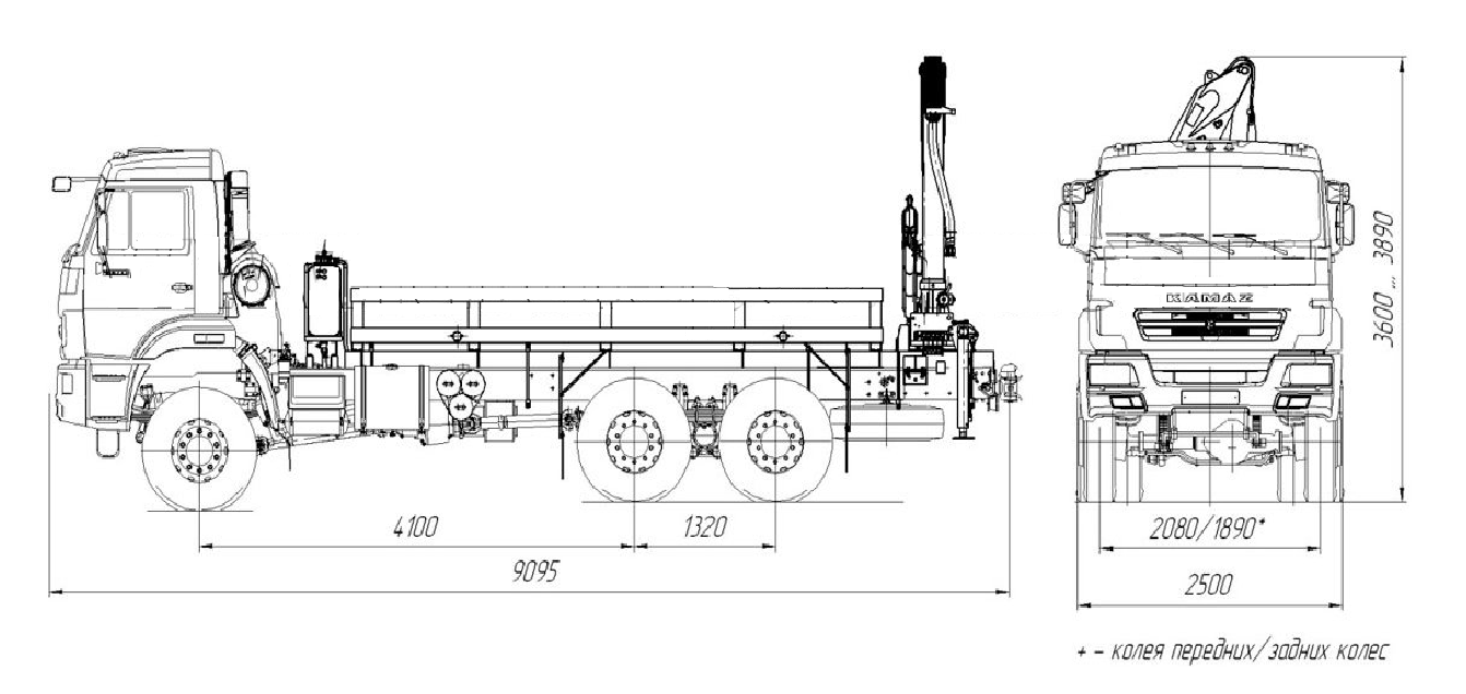 - бортовая платформа; - КМУ массой до 3 т, установленная на заднем свесе |