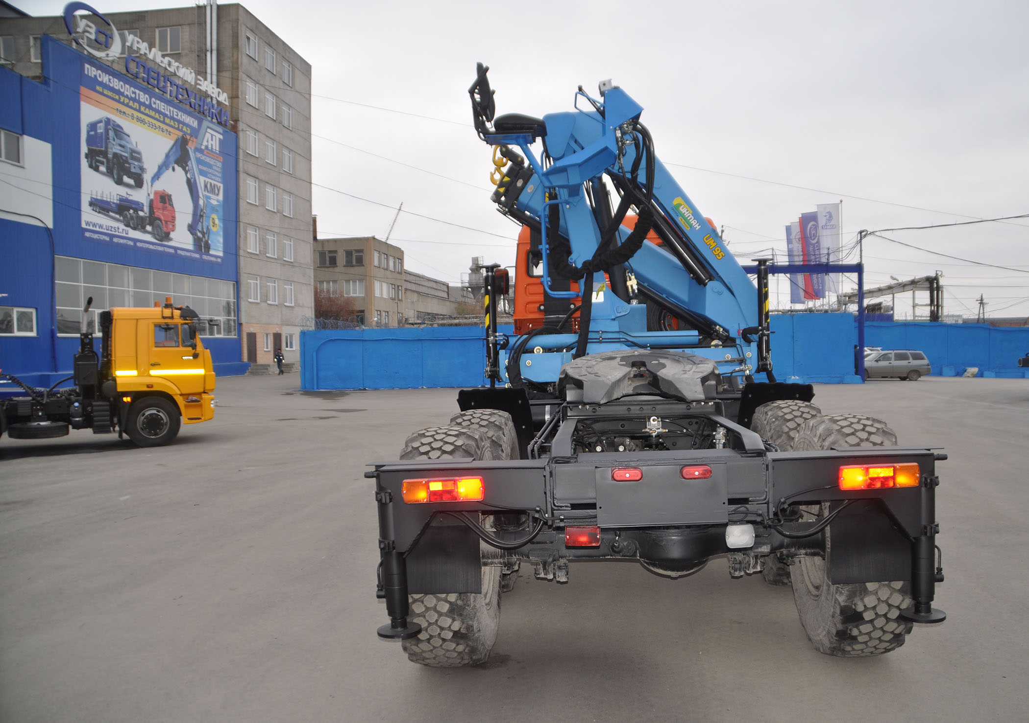 6х6, 300 л.с., коробка передач Камаз-154/ZF9, КМУ: грузовой момент 8,5 тм, вылет 8,25 м, г/п 4 т.