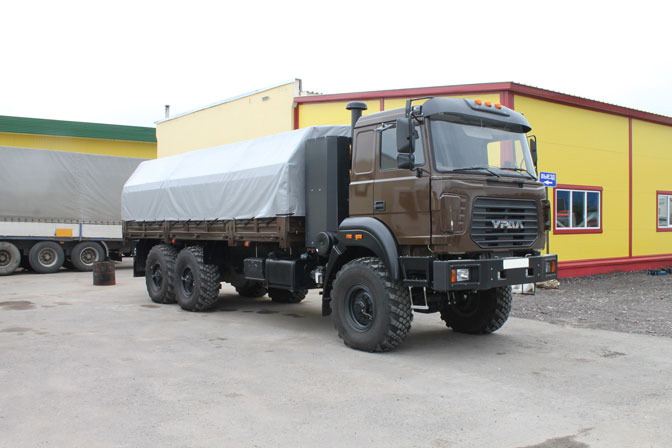 | Раздаточная коробка | ОАО «АЗ «УРАЛ», 2-х ступ. с межосевым дифференциалом (высшая передача 1,04; низшая передача 2,15) |