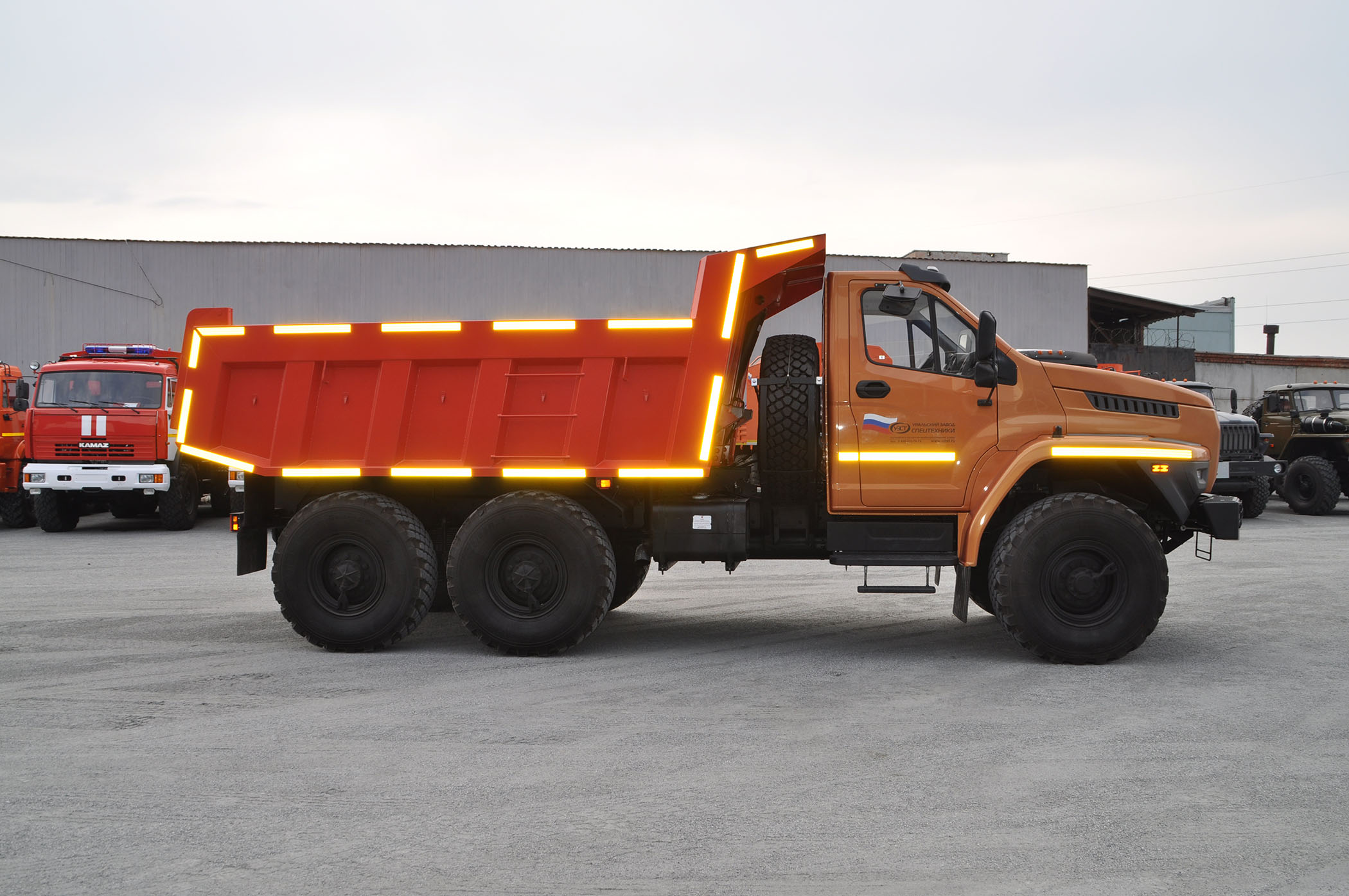 6х6, 275 л.с., 10 тн, 8 м³, задняя разгрузка, задний борт, платформа ковшового типа