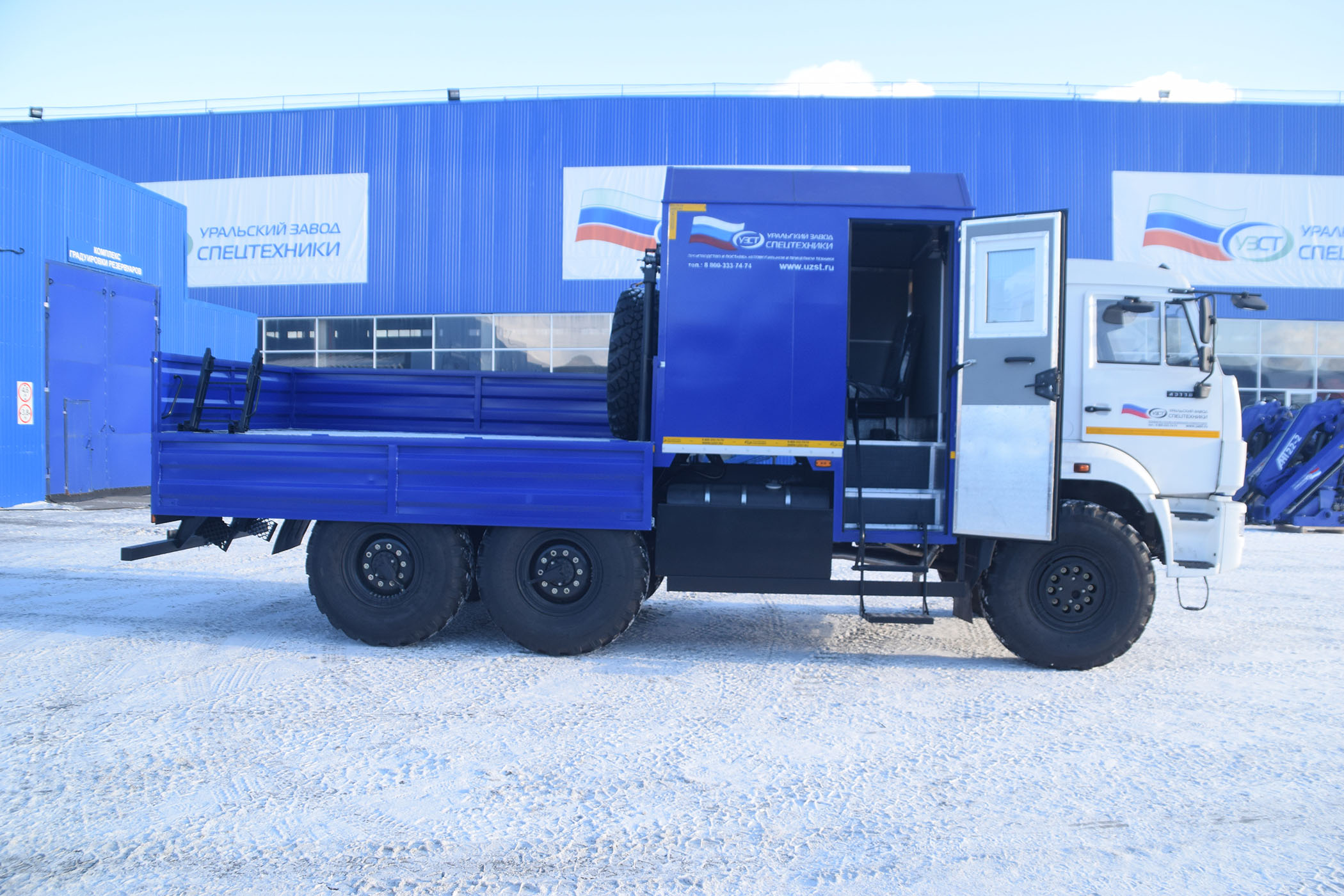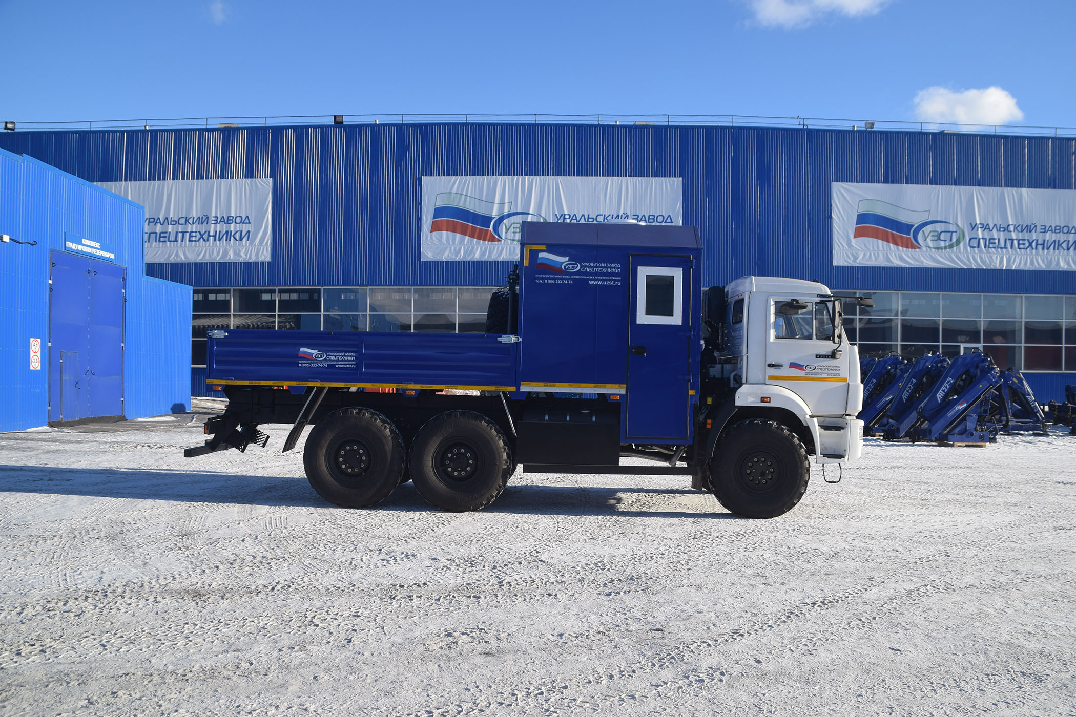 6х6, 260 л.с., коробка передач Камаз-154, бортовая платформа, мест в фургоне – 4 (+2 в кабине)