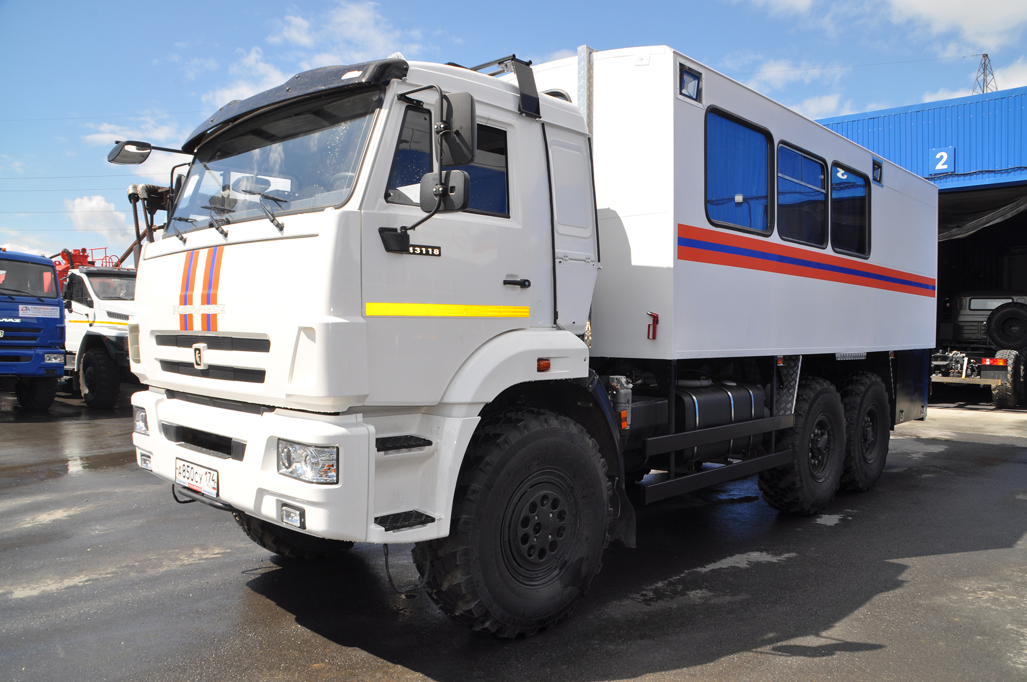 6х6, 300 л.с., коробка передач Камаз-154, закрытый грузовой отсек, мест в фургоне – 12 (+2 в кабине)