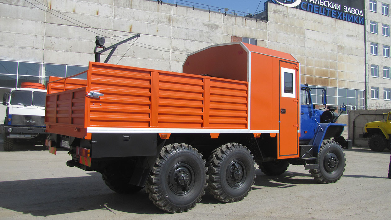 6х6, 230 л.с., коробка передач ЯМЗ-2361, бортовая платформа, места в фургоне – 4 (+2 в кабине)